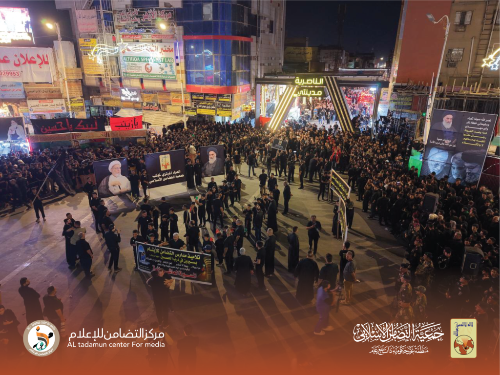 احيت جمعية التضامن الإسلامي في محافظة ذي قار، مساء اليوم السبت، ليلة العاشر من المحرم لعام ١٤٤٧ه ،بموكب عزاء حاشد انطلق من جامع الشيخ عباس الكبير باتجاه ساحة الحبوبي وانتهى عند مكتب اية الله الشيخ محمد باقر الناصري (طاب ثراه).وقد شهد موكب العزاء مشاركة حاشدة من المعزين الذين توافدوا من مختلف مناطق المحافظة، مرددين الهتافات الحسينية ومجسدين مشاهد رمزية تجسد معاني الفداء والتضحية التي خلدها الإمام الحسين (ع).